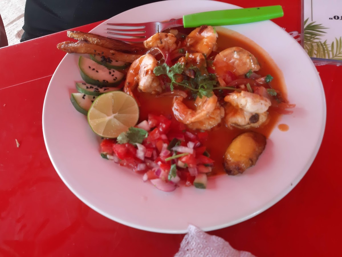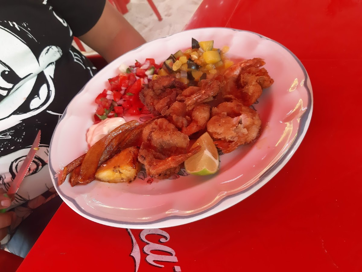This is an open-air, simple restaurant. Fish and shrimp, beer and refrescos, nothing fancy, but fresh fish and casual experience.